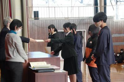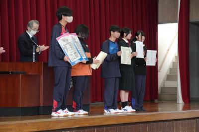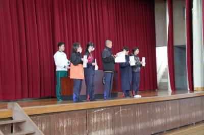 12月23日に賞状伝達式が行われました。賞状伝達者は以下の6名です。6名の功績を讃え、全校生徒から拍手が送られました。