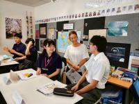 本校の生徒と交流し、お互いの国の学校や文化のこと、日本の漫画などについての話題で大変盛り上がりました。また、ちょうど高校野球の準決勝戦が行われており、生徒は中継を見ながらコバチ君に、夏の高校野球も日本の文化の一つだと説明しました。本校野球部が勝利し、喜びを分かち合いました。