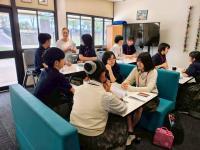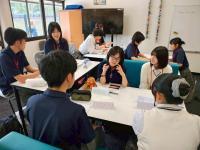 その後Morning TeaとLunch Timeを挟んでバディとの仲を深め、午後は本校生徒のみの英語授業(English Session)が行われました。日本とオーストラリアの学校生活の違いを英語で発表する活動と、ボールを使った英語版しりとりを行った後、明日行われるExcursion(校外学習)の事前学習を行い、明日訪れる施設の概要とに加え、オーストラリアの自然環境と環境問題について理解を深めました。明日のExcursionを通じて、生徒一人一人がさらに成長していくことを期待しています。