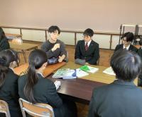 3校時には、日本と各国の学校制度や日常生活を比較しながら異文化理解を深めました。日本と韓国、中国、タイの高校生活について、似ている点や異なる点などを興味深く学ぶことができました。4校時には、留学生と高校生が混合のグループで、「プラスチック汚染」に関する課題や対策について議論しました。生徒たちは、身近な問題として捉えながら “What can we do to reduce plastic waste at school?” に答える形で英語でアクションプランを作成し、留学生と意見を交わしながら解決策を考える貴重な学びの時間となりました。