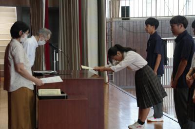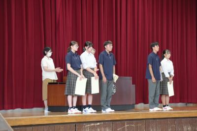 12月23日に賞状伝達式が行われました。賞状伝達者は以下の6名です。6名の功績を讃え、全校生徒から拍手が送られました。